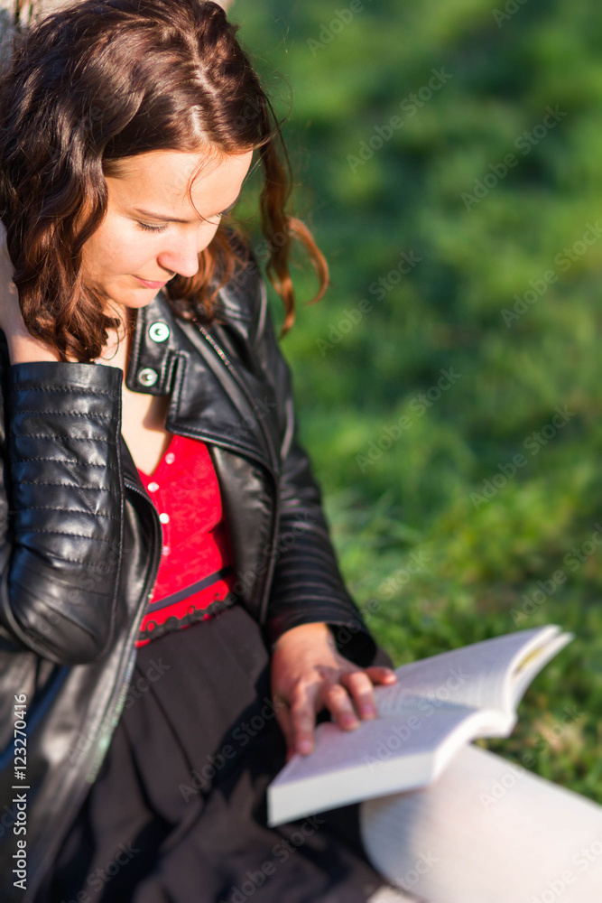 Woman reading in park