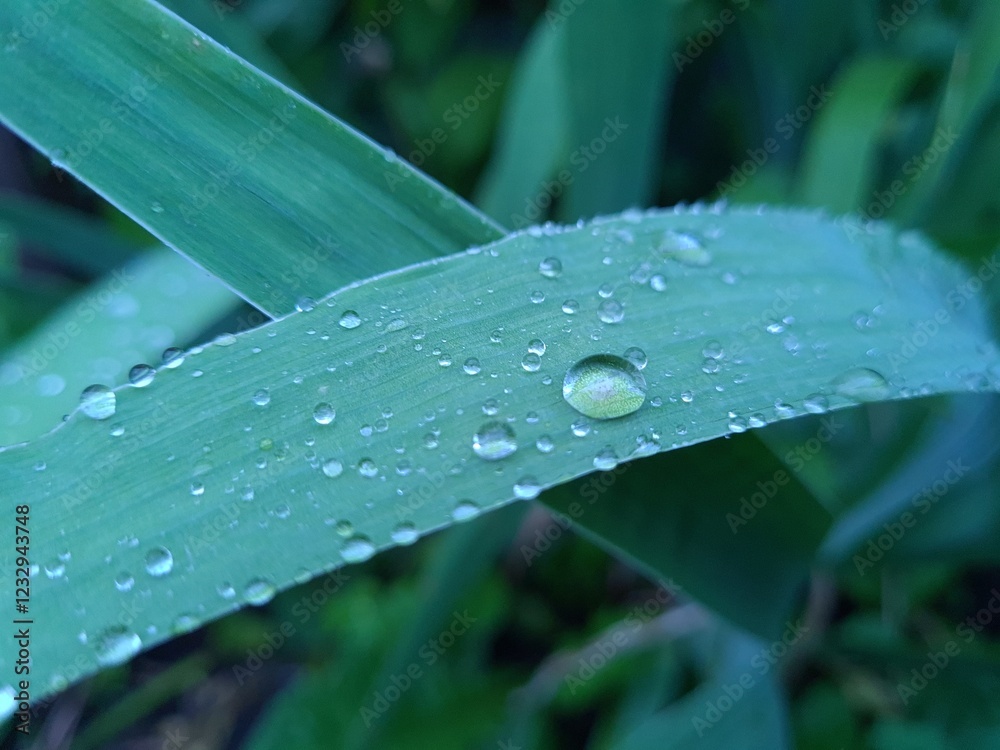 Green Leaves with Dew and Raindrops