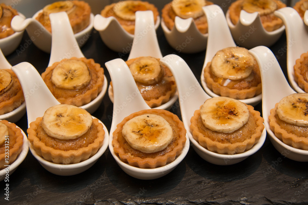 mini tart bananas in white cup