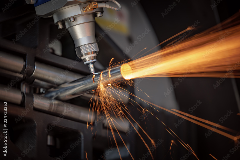 CNC Laser and gas cutting of metal, modern industrial technology.