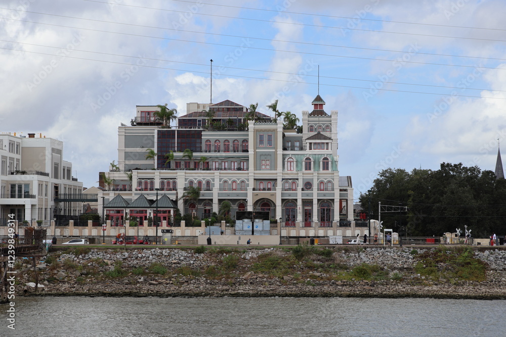 New Orleans, Louisiana city skyline from a steamboat on the Mississippi River