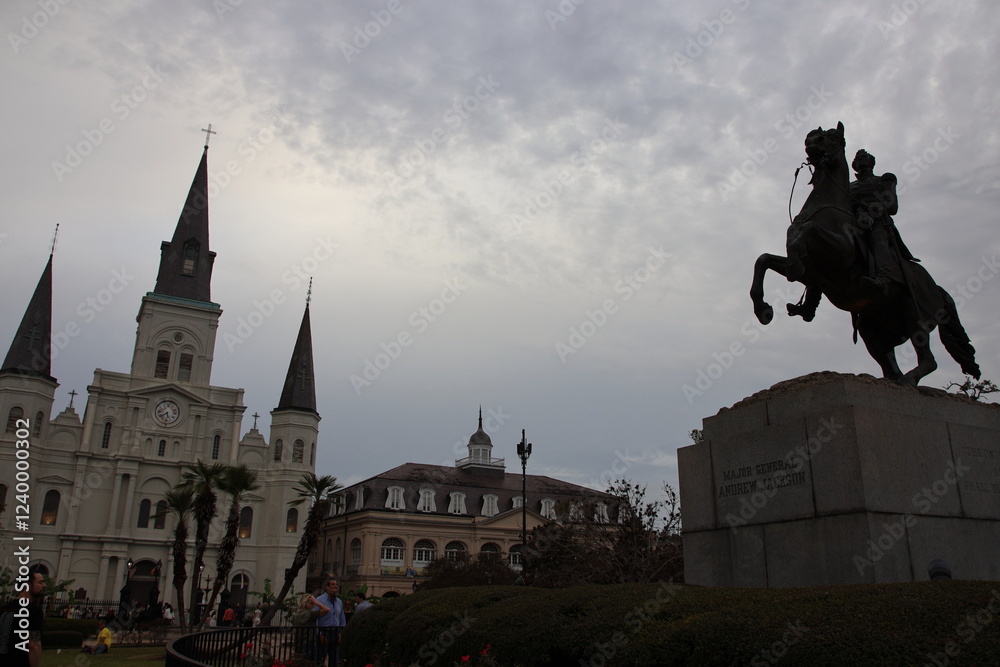 Building façades, historical architecture, and city streets in downtown New Orleans.