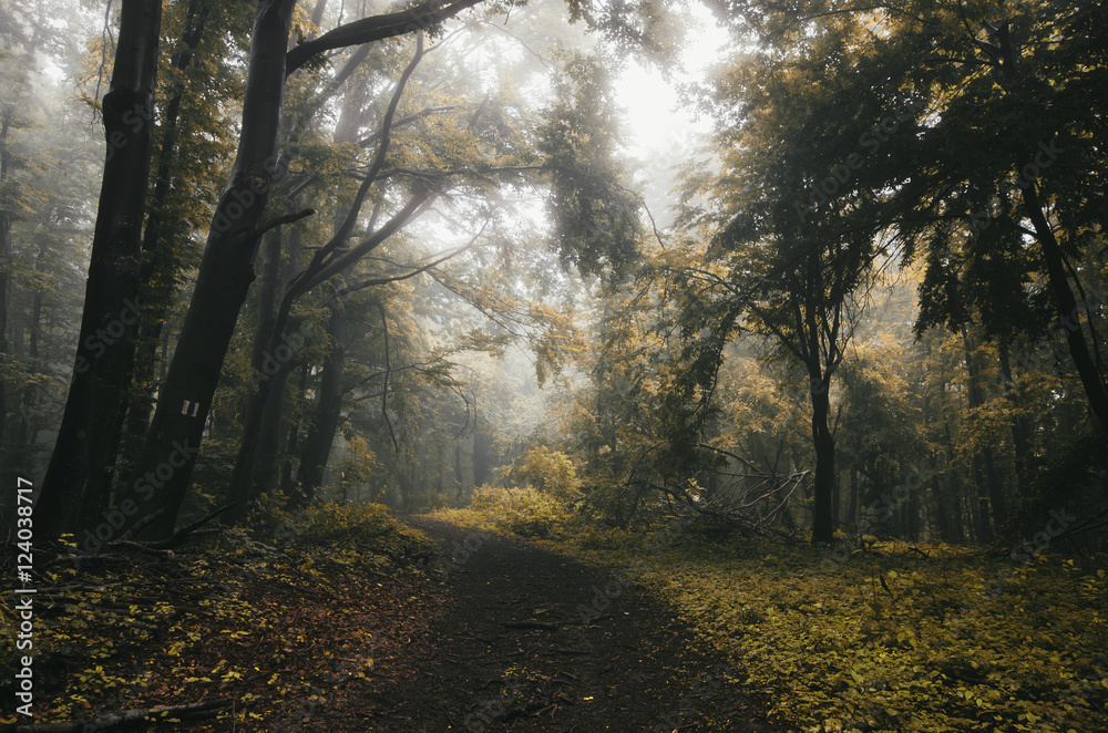 forest path and colorful foliage in autumn