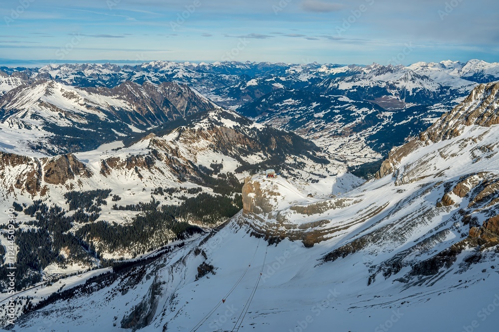 Glacier 3000 and Diablerets Mountain – Winter Alpine Landscape in Switzerland.