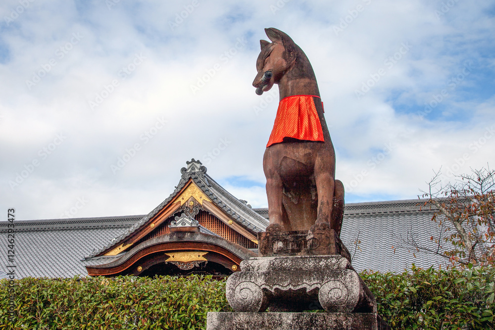 Kitsune or Inari Foax statue at fushimi-inari Shrine in Kyoto.