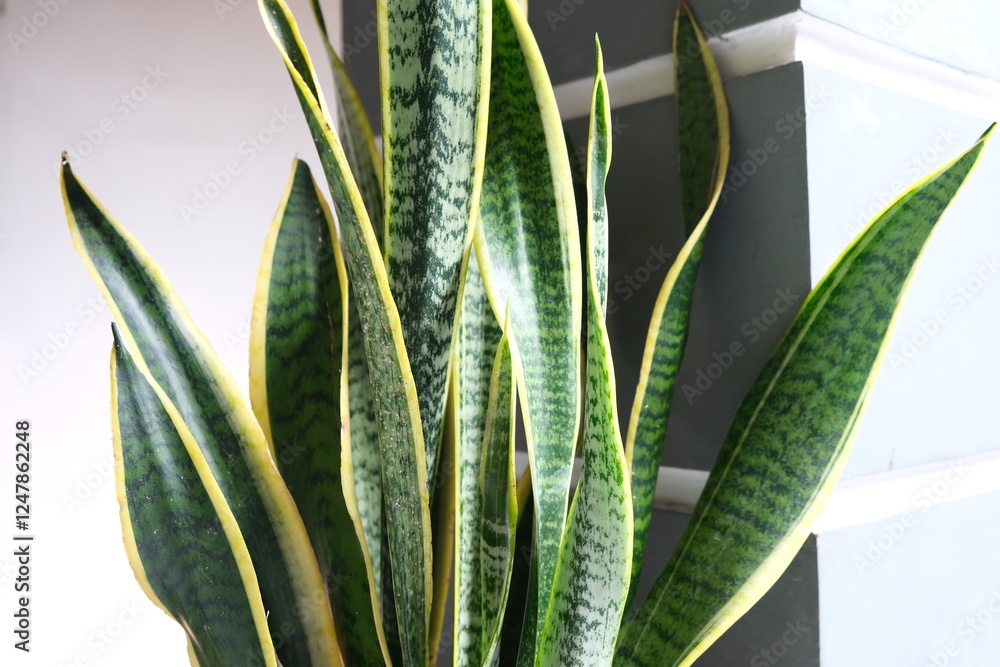 Sansevieria zeylanica, mother in law tounge, snake plant, dracaena trifasciata or Lidah Mertua. Summer indoor plant and urban forest