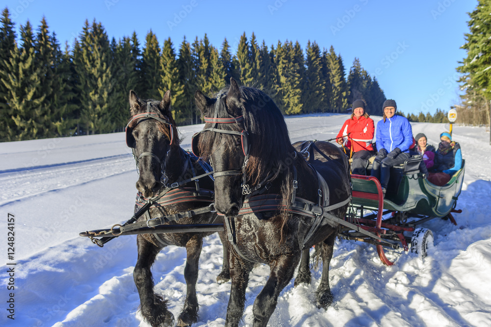 winterliche Kutschfahrt im Pferdeschlitten