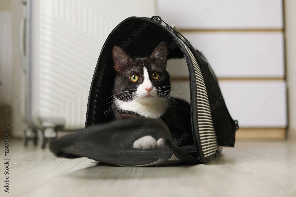A Relaxed Cat Snuggly Nestled in Its Cozy Animal Carrier, Radiating Contentment and Peaceful Vibes