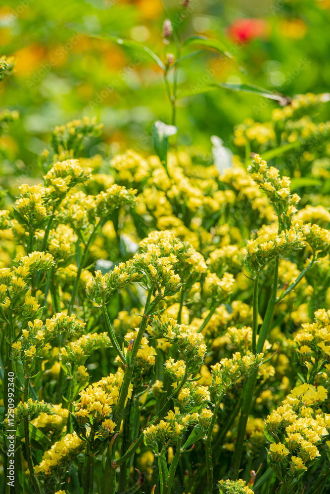 Vibrant Display of Yellow Wildflowers in a Lush Garden Setting During a Sunny Afternoon, Capturing Nature’s Beauty and Serenity