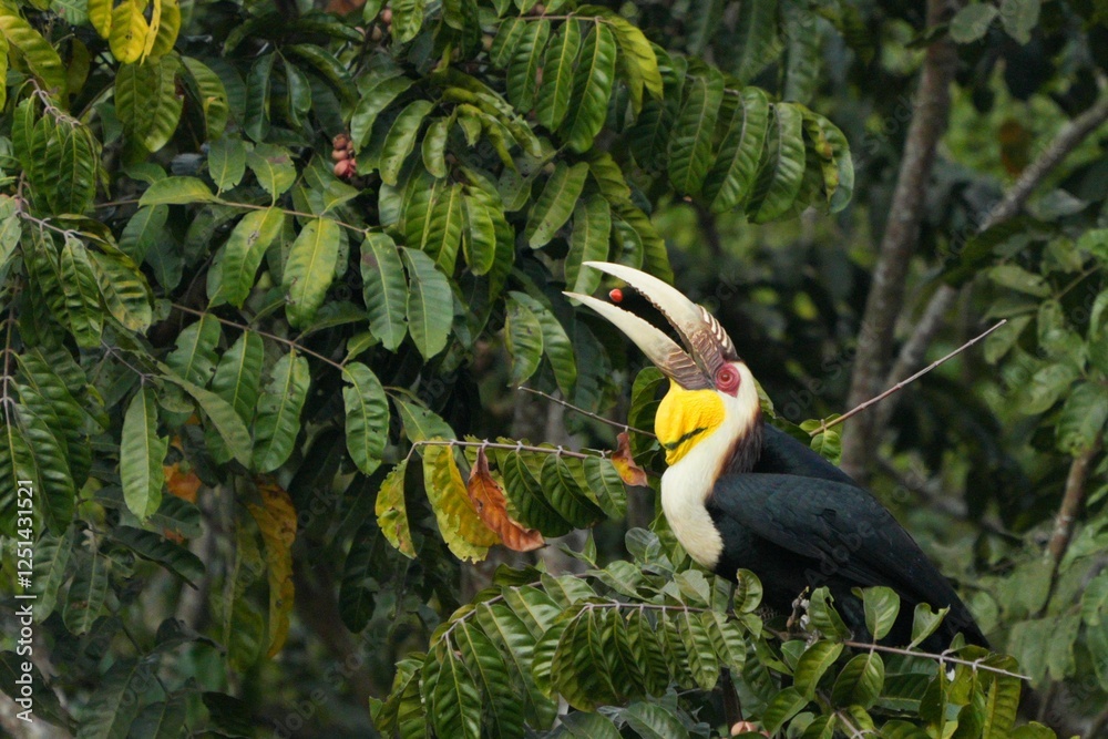 Hornbills live in natural forests in Thailand.