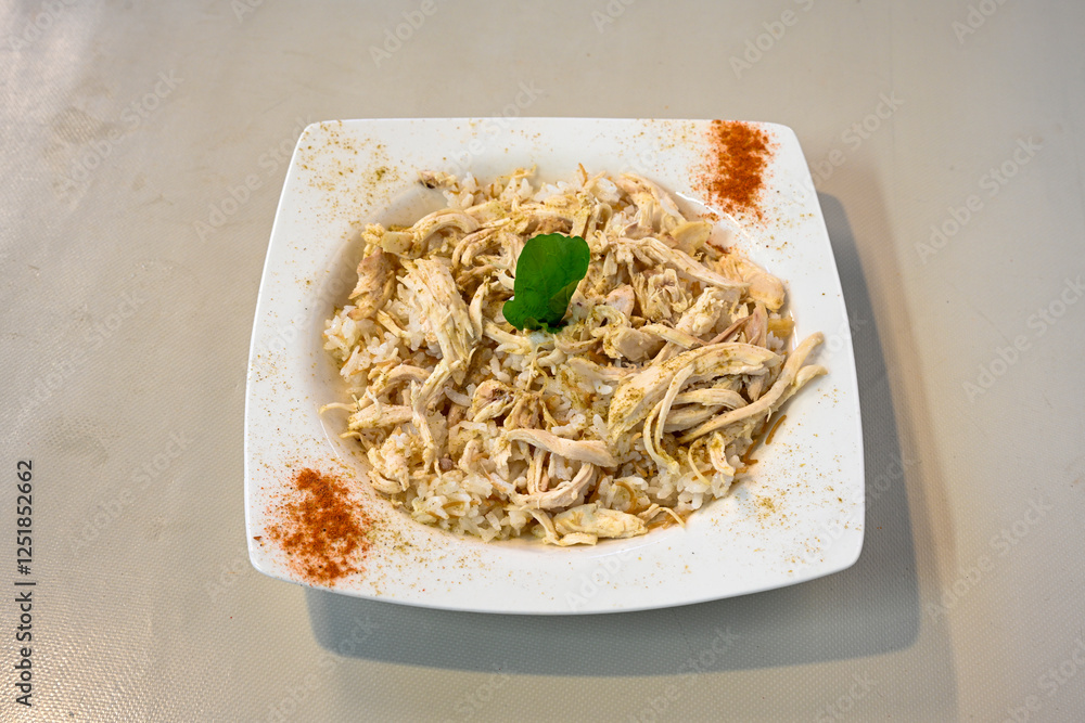Traditional delicious Turkish food; Turkish style rice pilaf (Turkish name; Arpa sehriyeli. tavuk, kuru fasulyeli, pirinc pilavi). Cigerli, kavurmali, tereyagli nohut pilav.