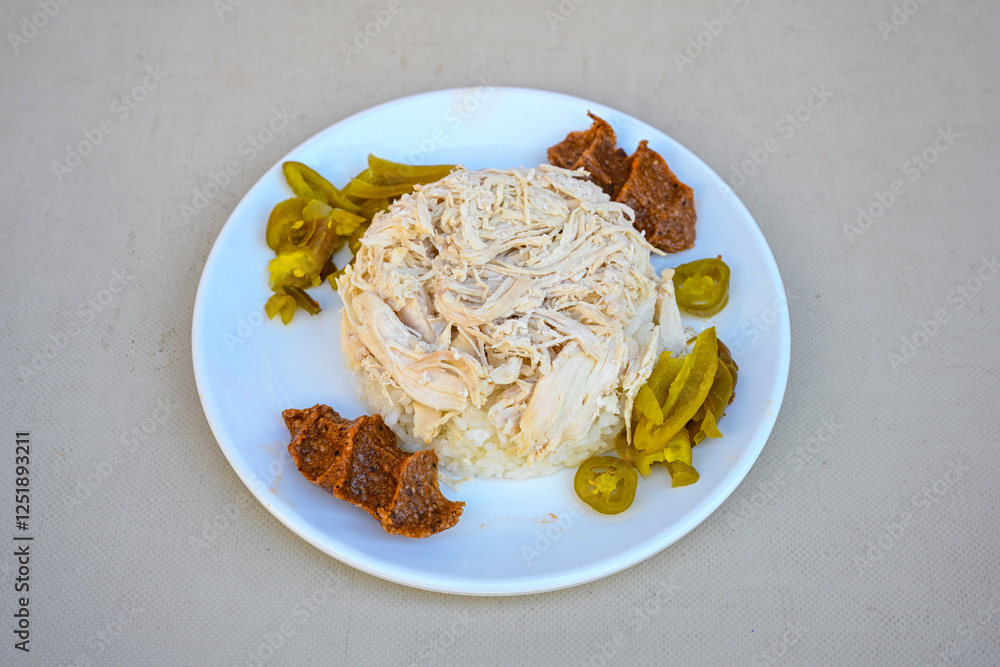 Traditional delicious Turkish food; Turkish style rice pilaf (Turkish name; Arpa sehriyeli. tavuk, kuru fasulyeli, pirinc pilavi). Cigerli, kavurmali, tereyagli nohut pilav.