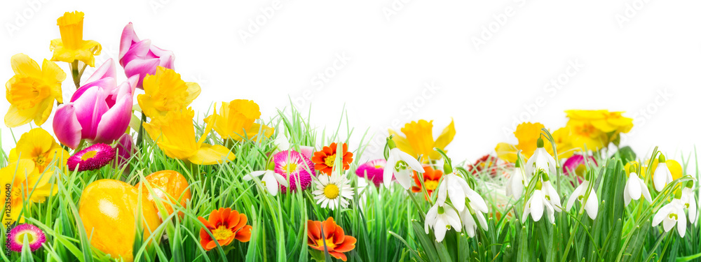 Osterwiese, Ostereier, Osterblumen, Banner