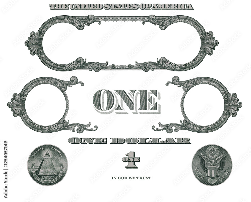 Elements of 1 US dollar banknote