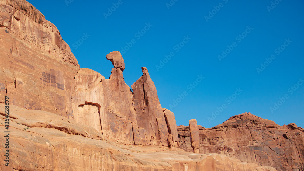Detail view of the rock monument named Nefertiti found along Park Avenue in Arches National Park