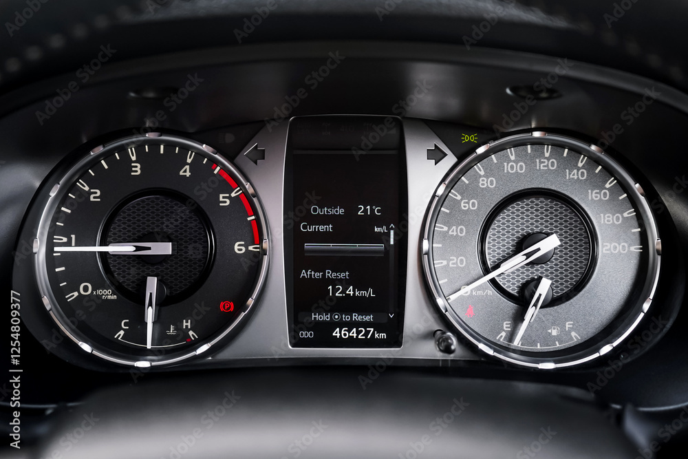 car​ instrument panel, car​ speed motor of​ night, car​ dashboard​ modern​ automobile control​illuminated panel​ speed display.