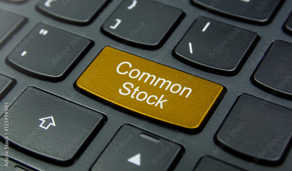 Business Concept: Close-up the Common Stock button on the keyboard and have Gold, Yellow color button isolate black keyboard