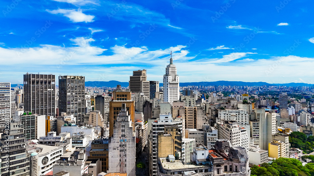 Visão aérea do centro urbano e prédios da capital da cidade de são paulo, sp, brasil