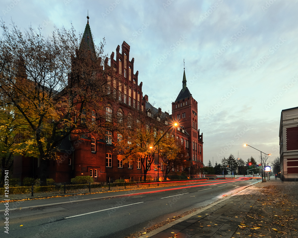 Autumn street in the evening, Gliwice, Poland