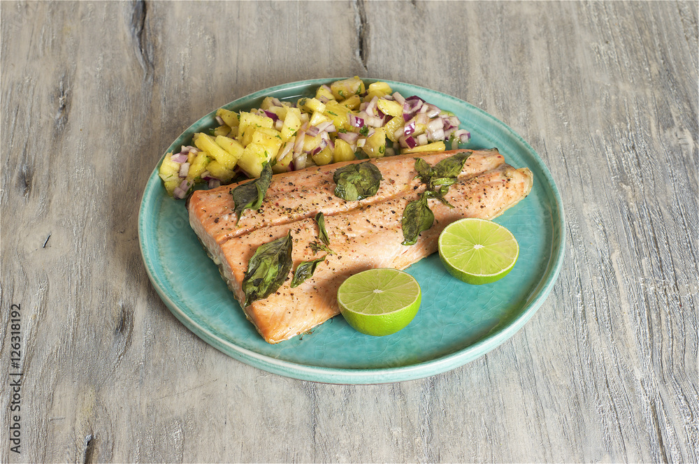 Salmon with pineapple salsa and
