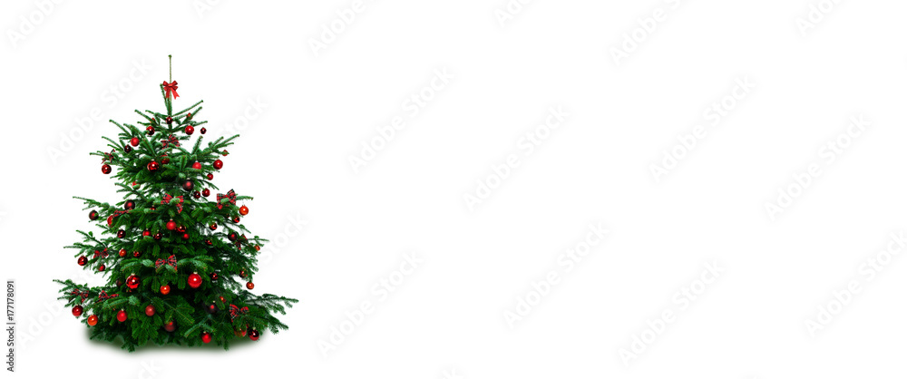 Elegant geschmückter Christbaum mit goldenen und roten Weihnachtskugeln