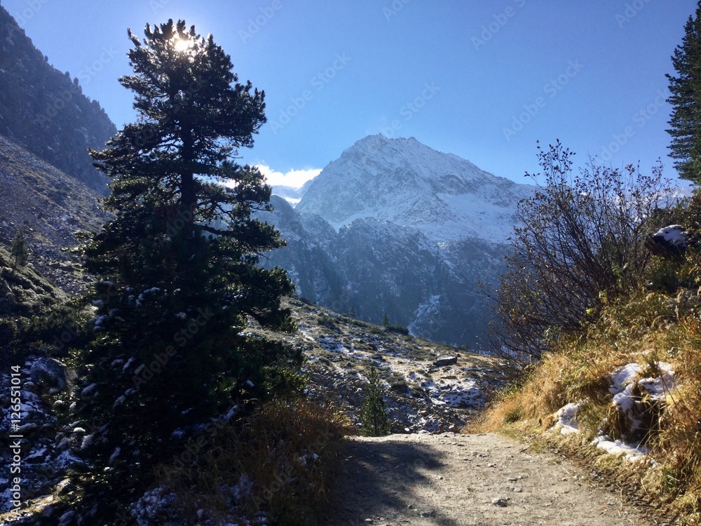 Wanderweg zum verschneiten Gipfel im Gebirge