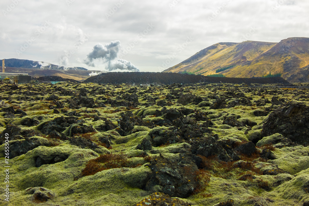The Lava field at Blue Lagoon geothermal spa in Iceland
