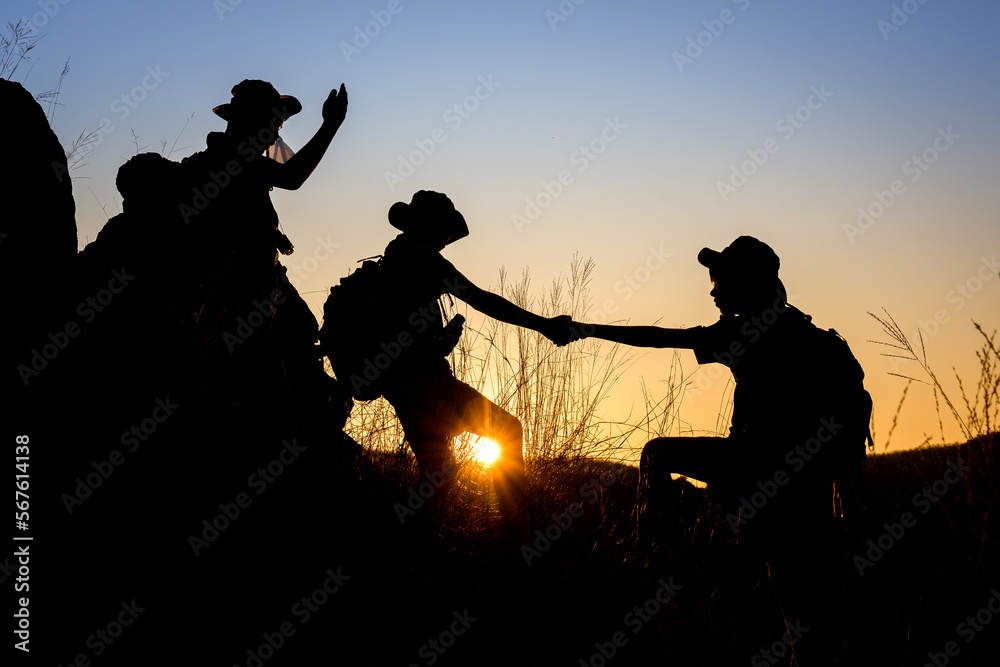 Silhouette of birds at sunset time.