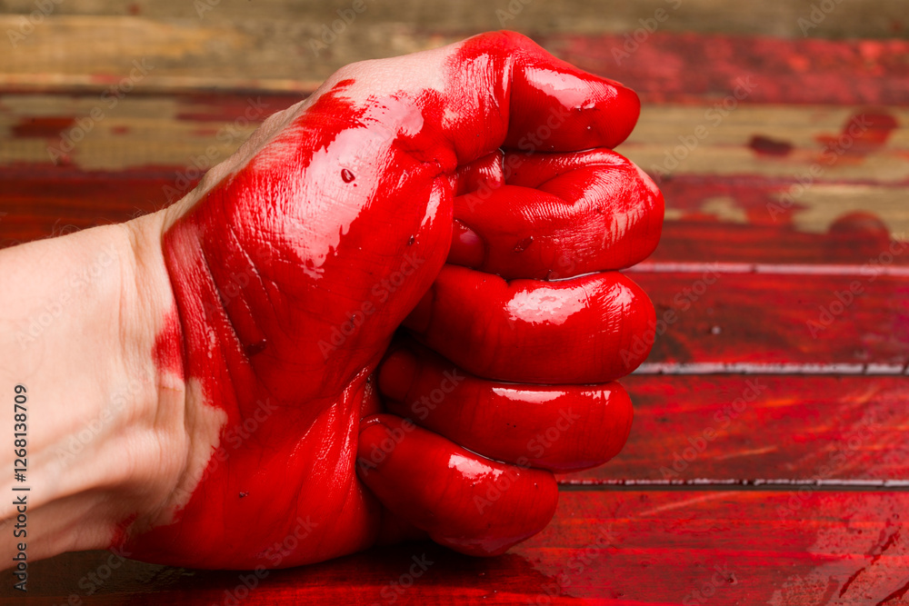 hand in blood on background of blood