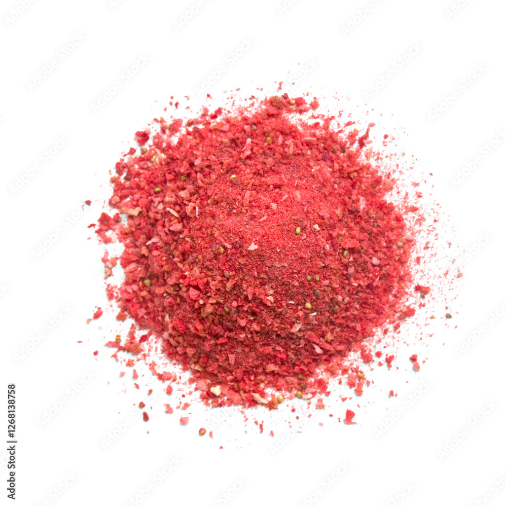 strawberry powder on white background