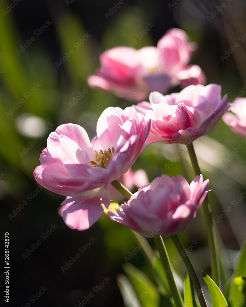 Pink Tulip Flowers with Leaves Close-Up