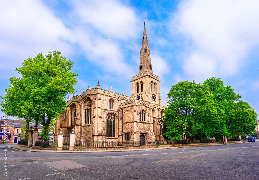 Bedford. UK: Street view of St. Paul's Church, a thriving parish church set in the heart of the busy market and county town