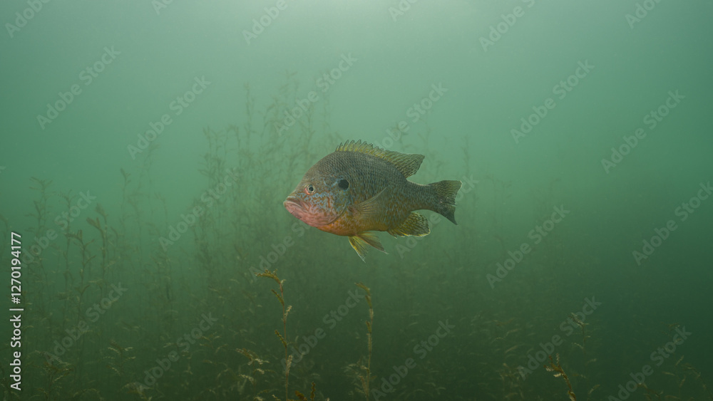 Pumpkinseed Bluegill Lepomis gibbosus Hovering in Freshwater Habitat