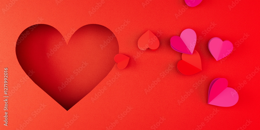 Red Heart Cutout with Pink and Red Hearts on Gradient Background