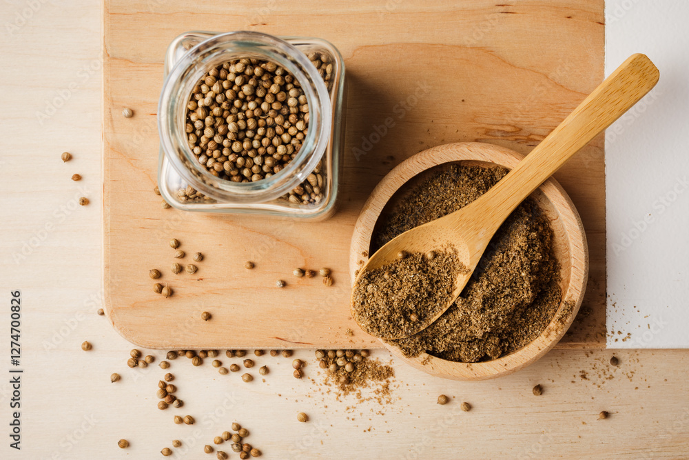 Whole and ground coriander.