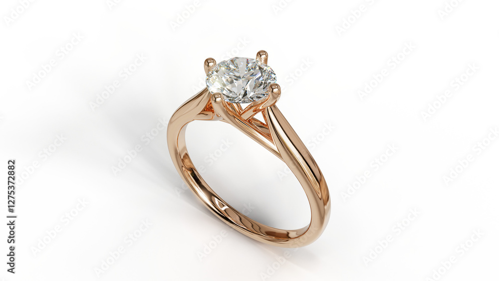3D render of a Rose gold solitaire ring with a natural diamond,