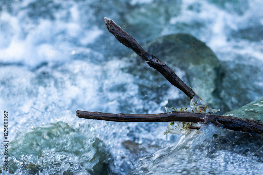 High angle shot of a dried branch in a river- Natural beauty concept.