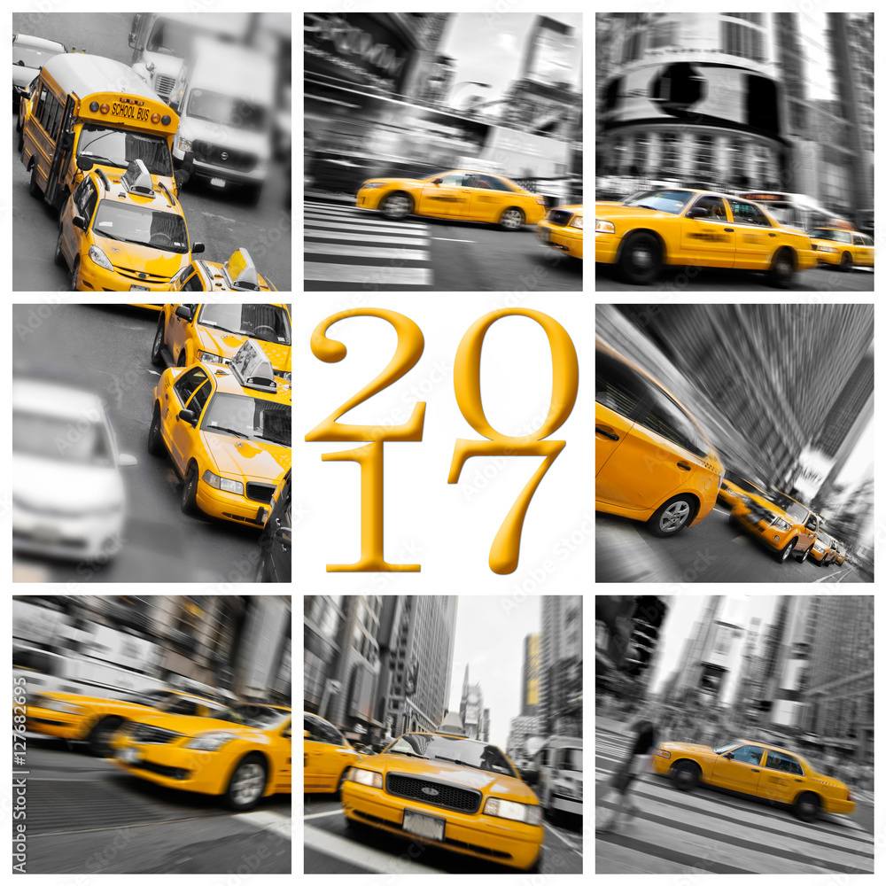 2017 yellow taxis in New York square greeting card
