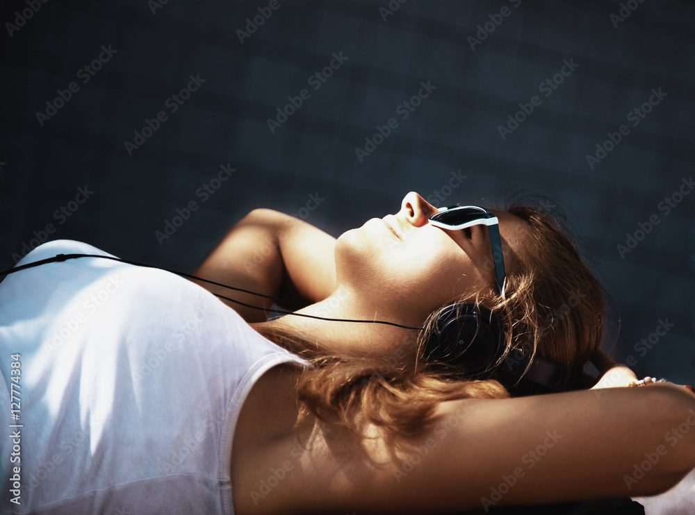 Teenage lifestyle. happy young attractive girl listening music w