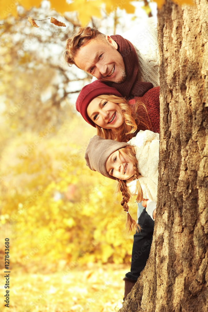 Happy family resting in beautiful autumn park