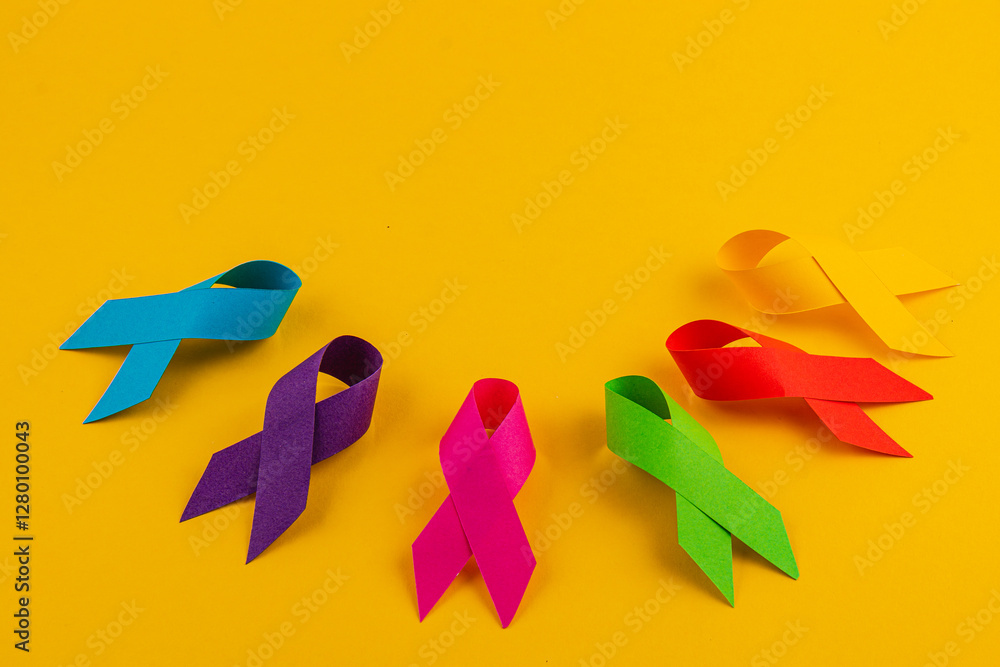 Colorful awareness ribbons symbolizing various health campaigns and support