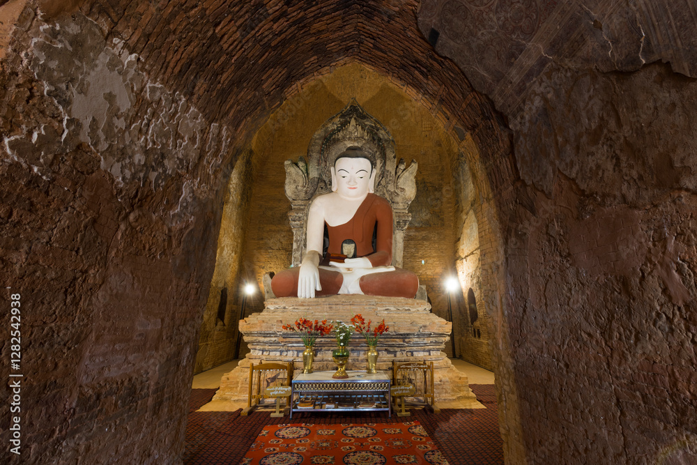 principle Buddha image of Tha Kya Pone Temple and Hidden Indra in the Stomach , Nyaungu city, Myanmar