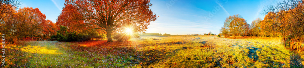 Panorama Landschaft mit Wald und Wiese im Herbst