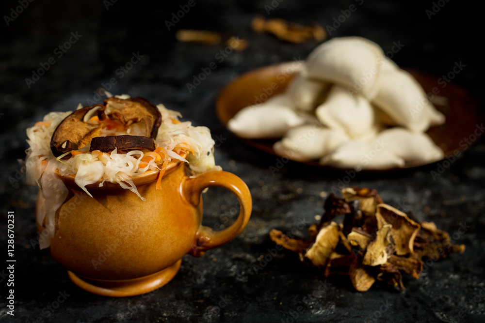 Traditional Polish dumplings filled with cabbage and mushrooms