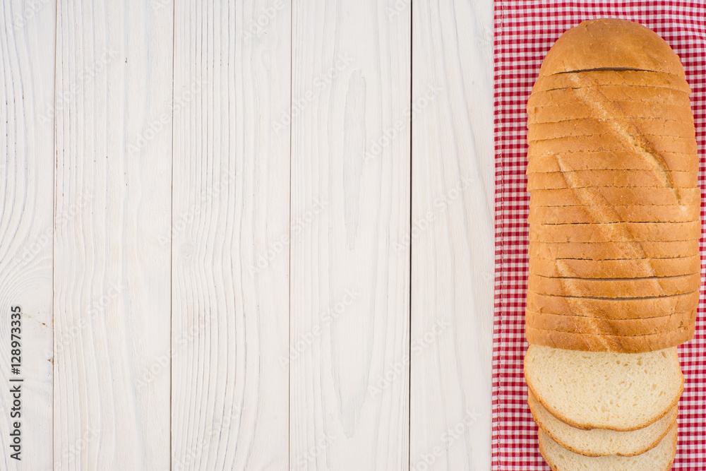 Loaf of bread on a wooden table.
