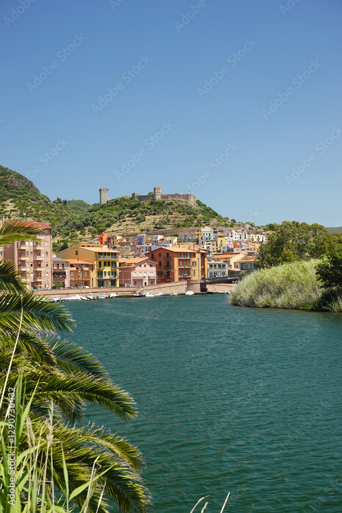 Bosa and its castle seen from the river Temo, Sardinia, Italy
