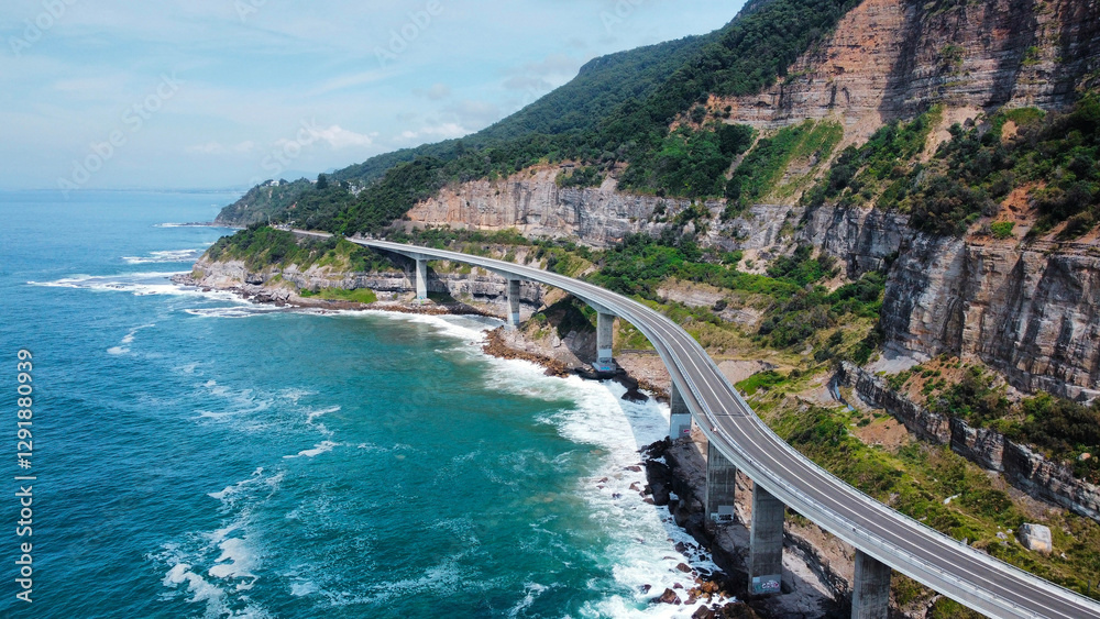Sea Cliff Bridge - Aerial Drone Footage of Iconic Coastal Highway in Australia