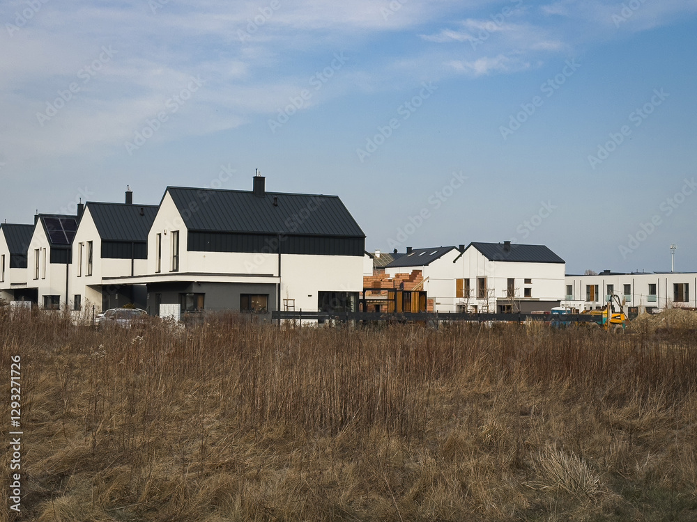 Budownictwo mieszkaniowe. Osiedla podmiejskie o niskiej zabudowie. Sypialnie dużych miast. Budowa domu.