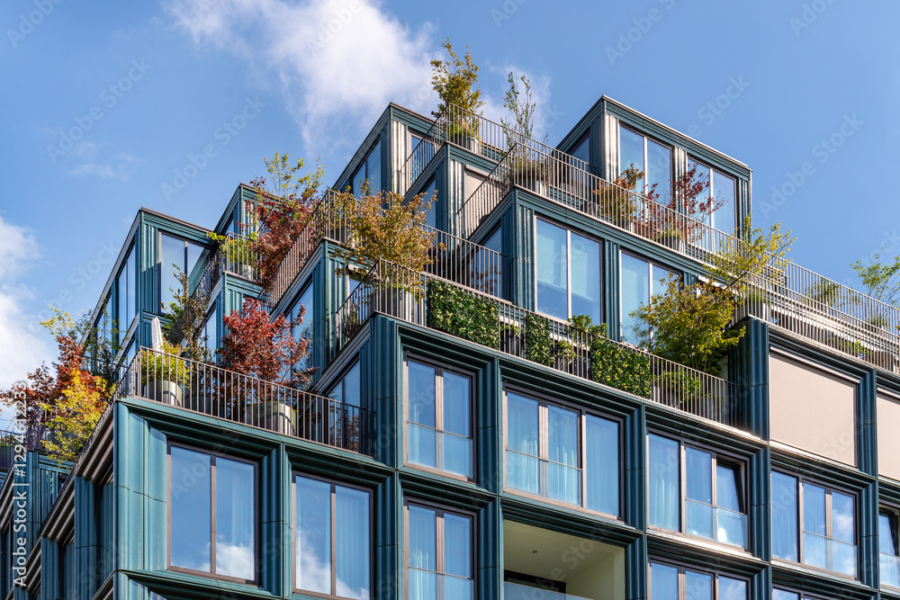 Sustainable Urban Living: A showcase of modern eco-friendly residential architecture integrating greenery with contemporary design.