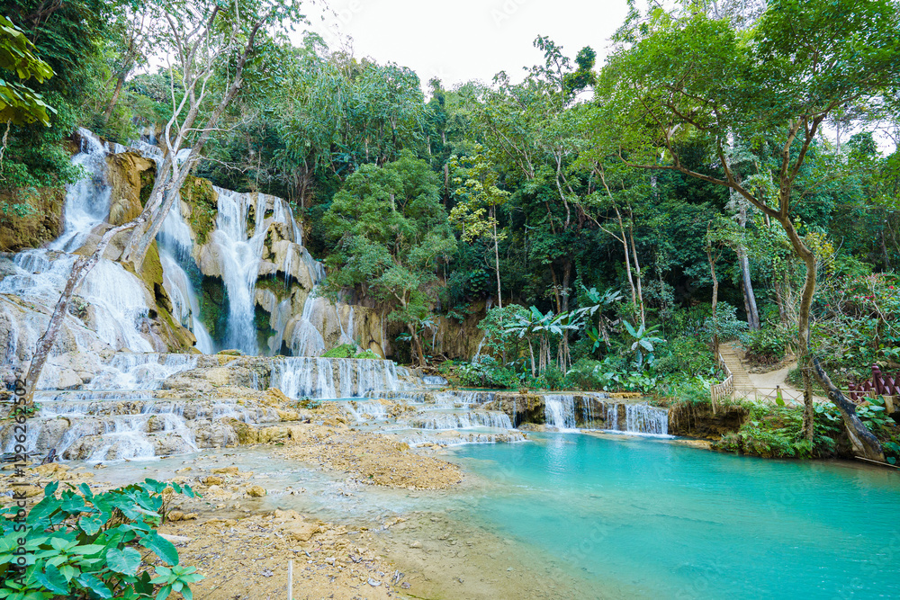 Waterfall in Laos, Luang Prabang region during travel with Silky Waterfalls, travel photography during day time